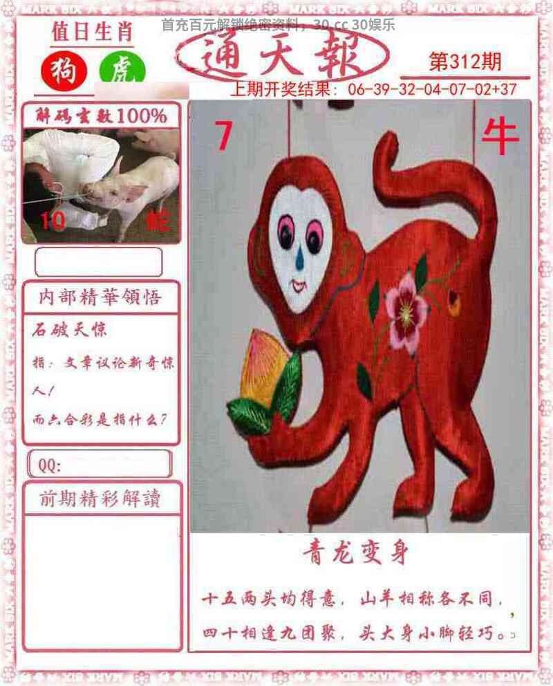 312期⑦肖:龙猪蛇牛狗鼠鸡 |